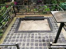 Мы цементируем подставку под памятник, выставляем гранитный цветник выкладываем всю территорию участка брусчаткой. Параллельно с этим устанавливаем простой столик.